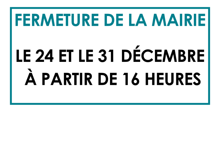 La mairie de Pinsaguel sera fermée le mardi 24 décembre et le mardi 31 décembre à partir de 16 heures.